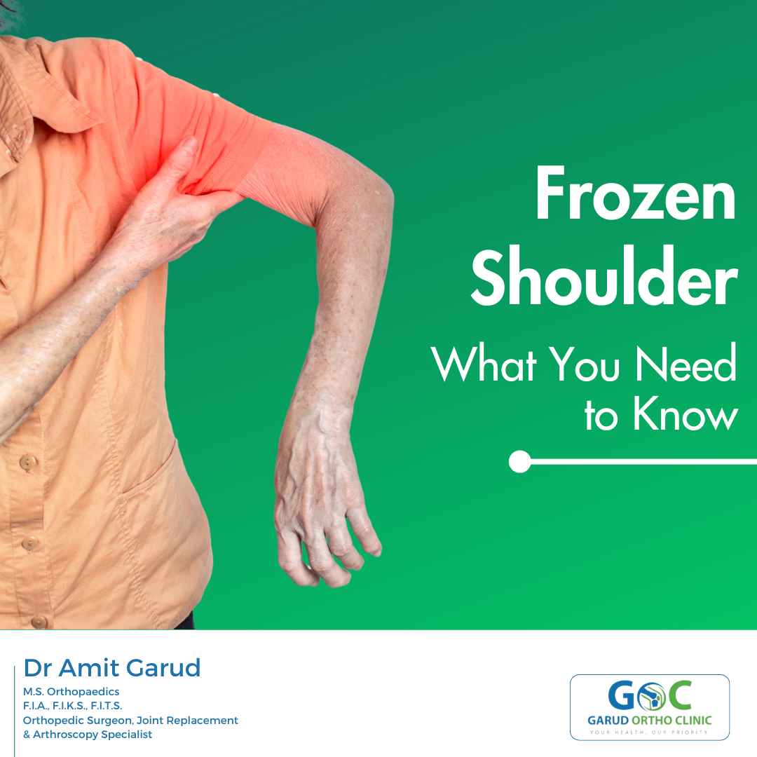 Insights from Dr Amit Garud, Orthopedic doctor in Kalyan West Dr. Amit Garud, an orthopedic, arthroscopy, and joint surgeon at Garud Ortho Clinic in Kalyan, explains that frozen shoulder, also known as adhesive capsulitis, is a condition characterized by stiffness and pain in the shoulder joint. It gradually worsens over time and then typically resolves within a few years. Signs- The main symptoms include dull or aching pain in the outer shoulder area, restricted motion, and pain during shoulder movement. It can also cause pain at night, disturbing sleep. Causes- The condition results from inflammation and tightening of the capsule around the shoulder joint. Risk factors include medical conditions like diabetes, thyroid disorders, immobility due to injury or surgery, age (more common in the elderly), and gender (women are at higher risk). Treatment Options- Treatment may involve physiotherapy to restore motion, pain relief medications, and in some cases, corticosteroid injections. Severe cases might require surgical intervention to loosen the joint capsule.